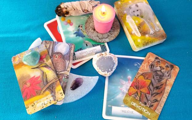 Cards in photo from: Wisdom of the Oracle and Spirit Animal Oracle by Colette Baron-Reid