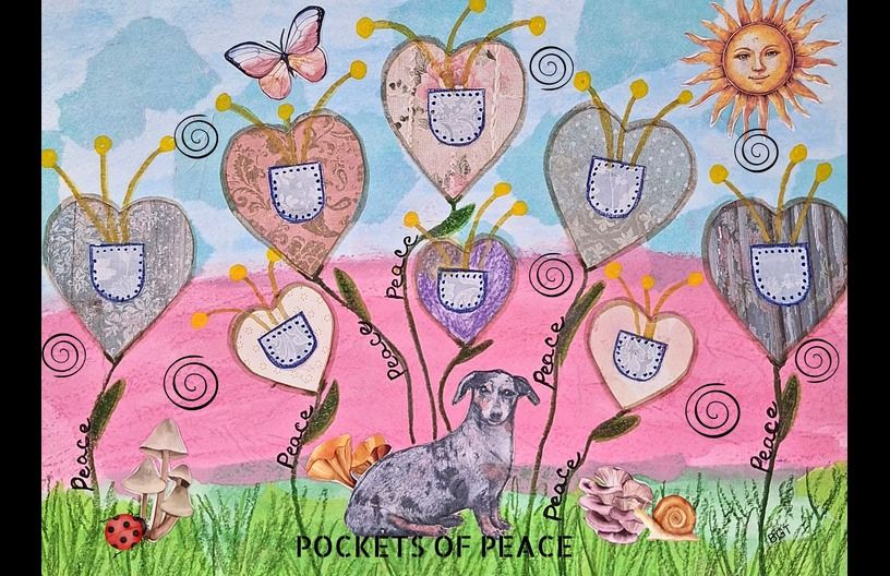 Within each heart, a pocket with starbursts bloomed outwards representing that when we are in a space of peace it is like sparks of lights of peace that effortlessly radiate out into the world.
